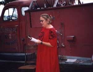 Leetle dog in me lap in dah garden
